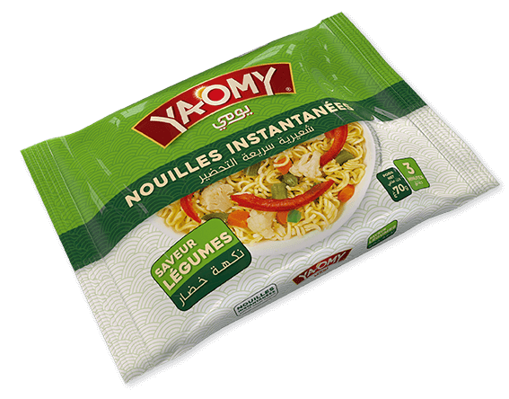 Préparé avec des nouilles Yaomy, du chou pointu et du brocoli