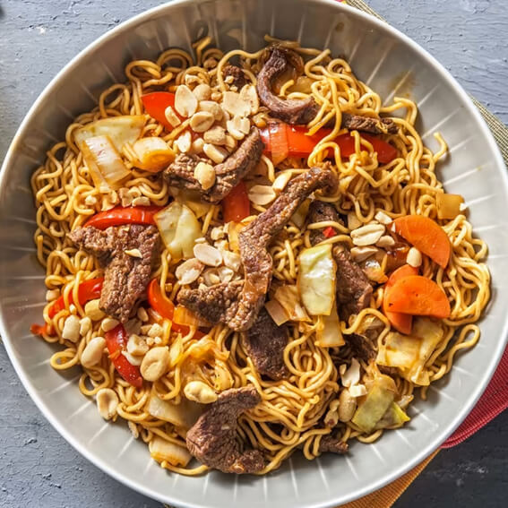 NOUILLES YAOMY À L’ASIATIQUE, BOEUF ET LÉGUMES